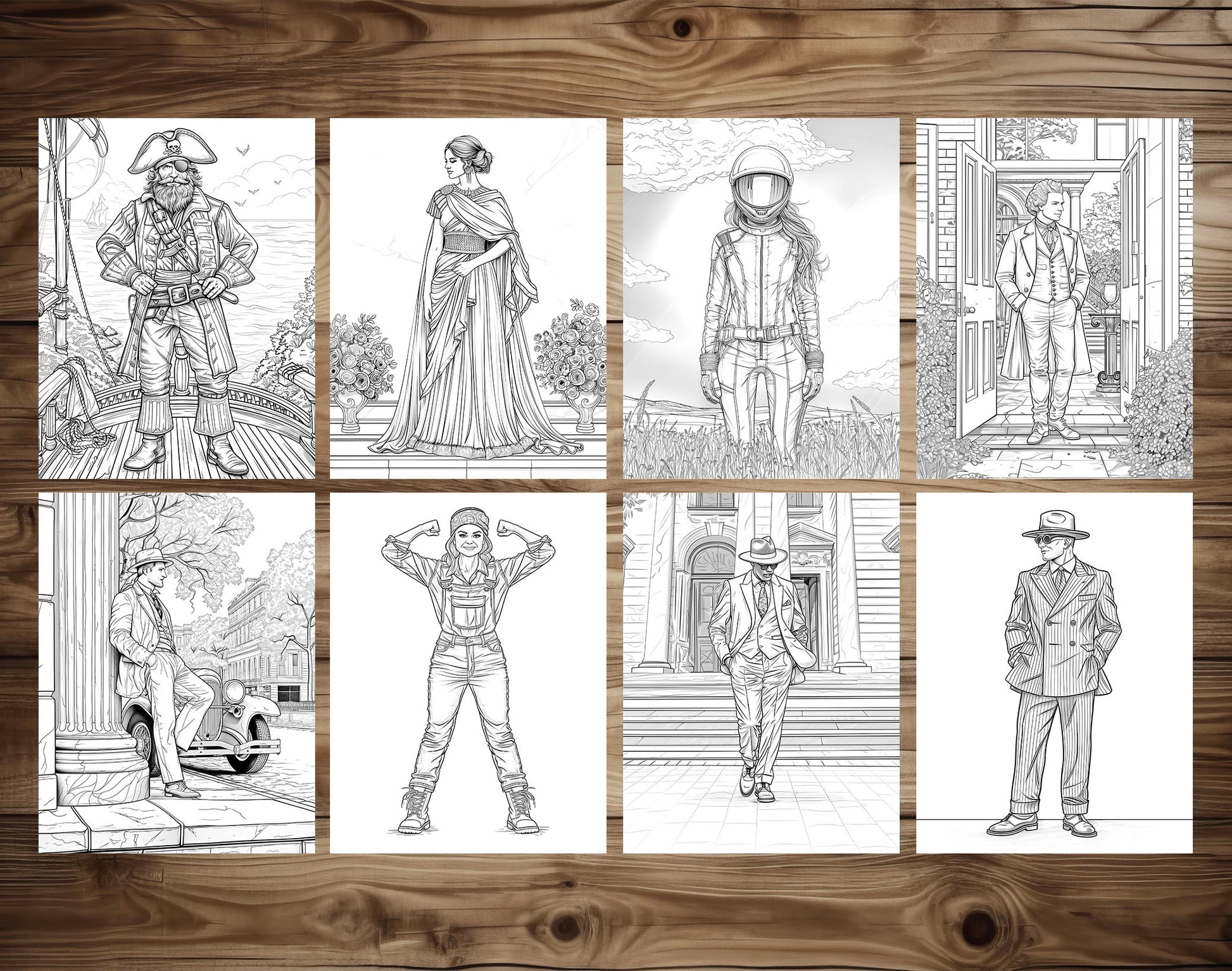 75 Fashion Through Ages Coloring Pages - Instant Download - Printable PDF