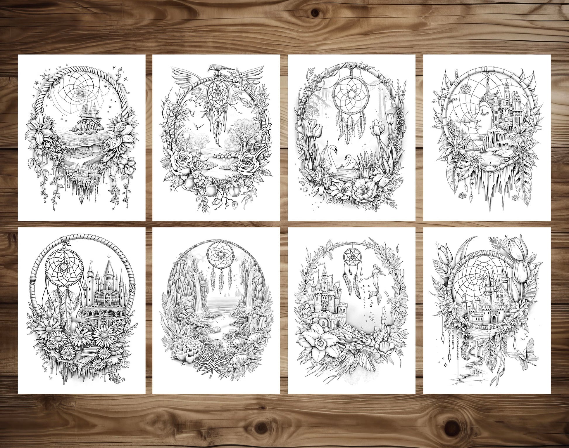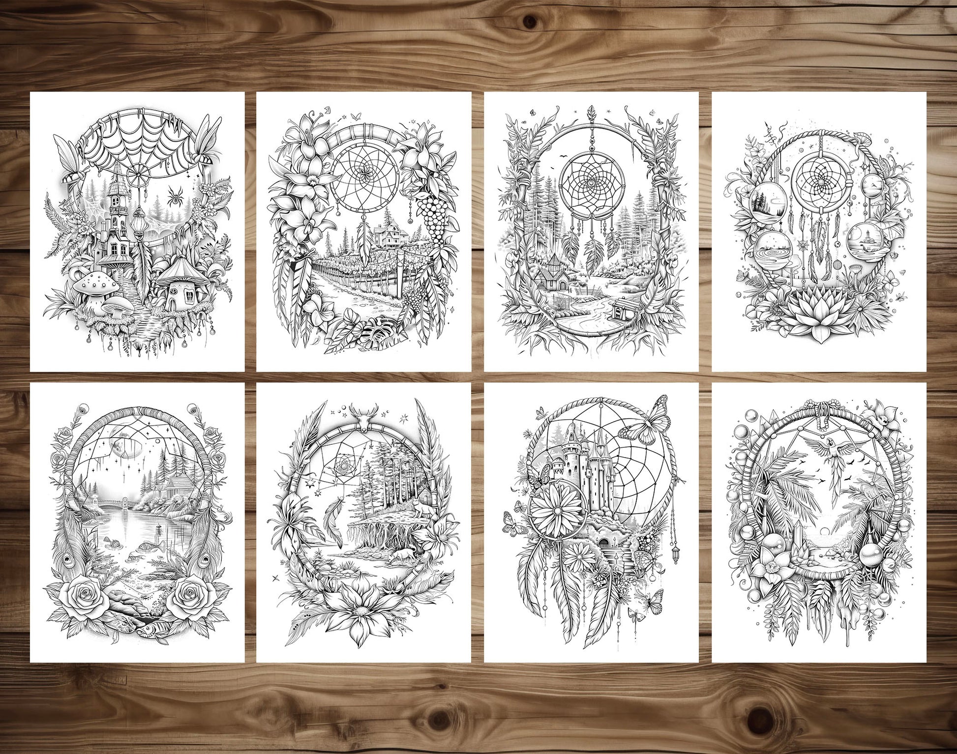 80 Magical Dreamcatchers Grayscale Coloring Pages - Instant Download - Printable PDF Dark/Light