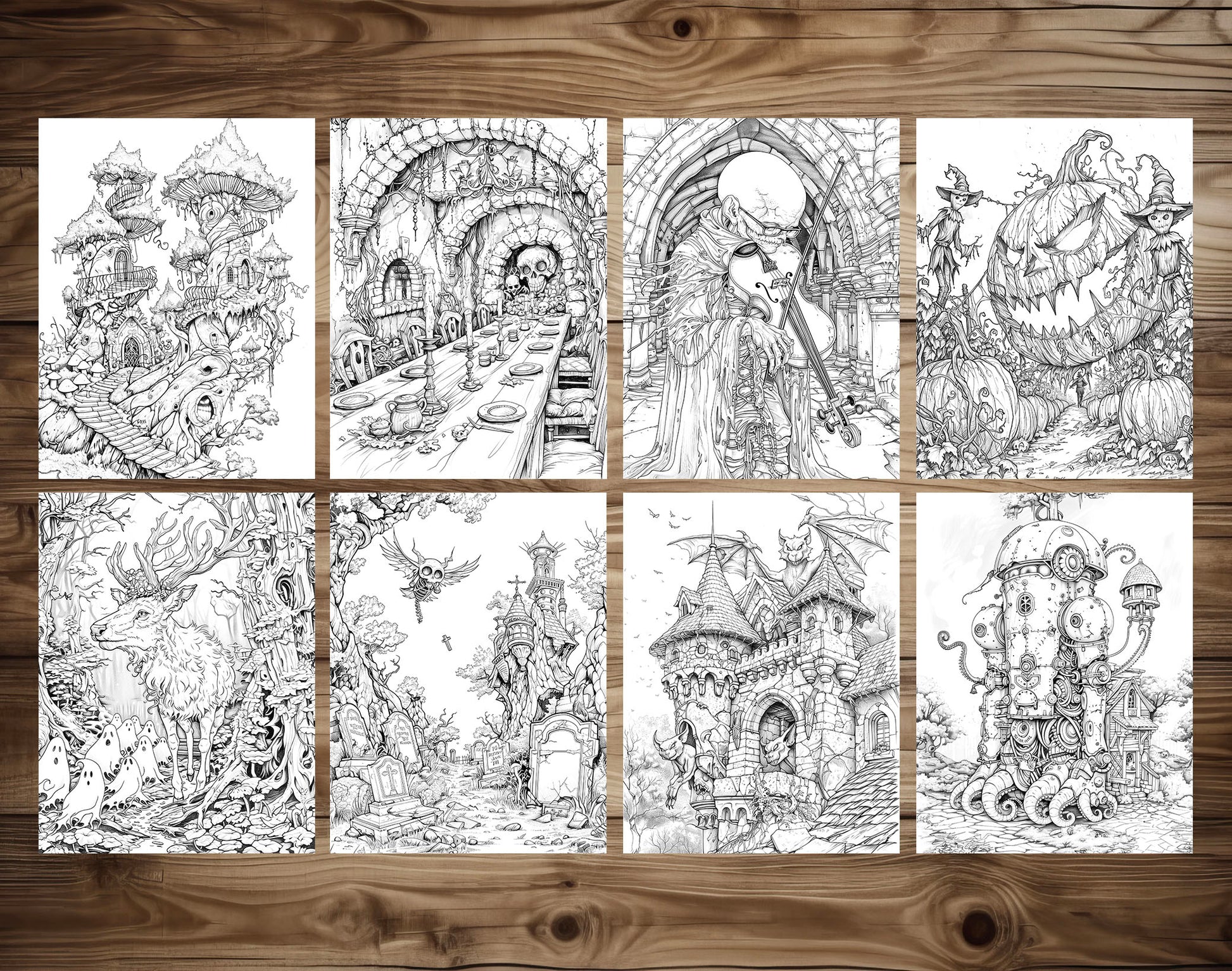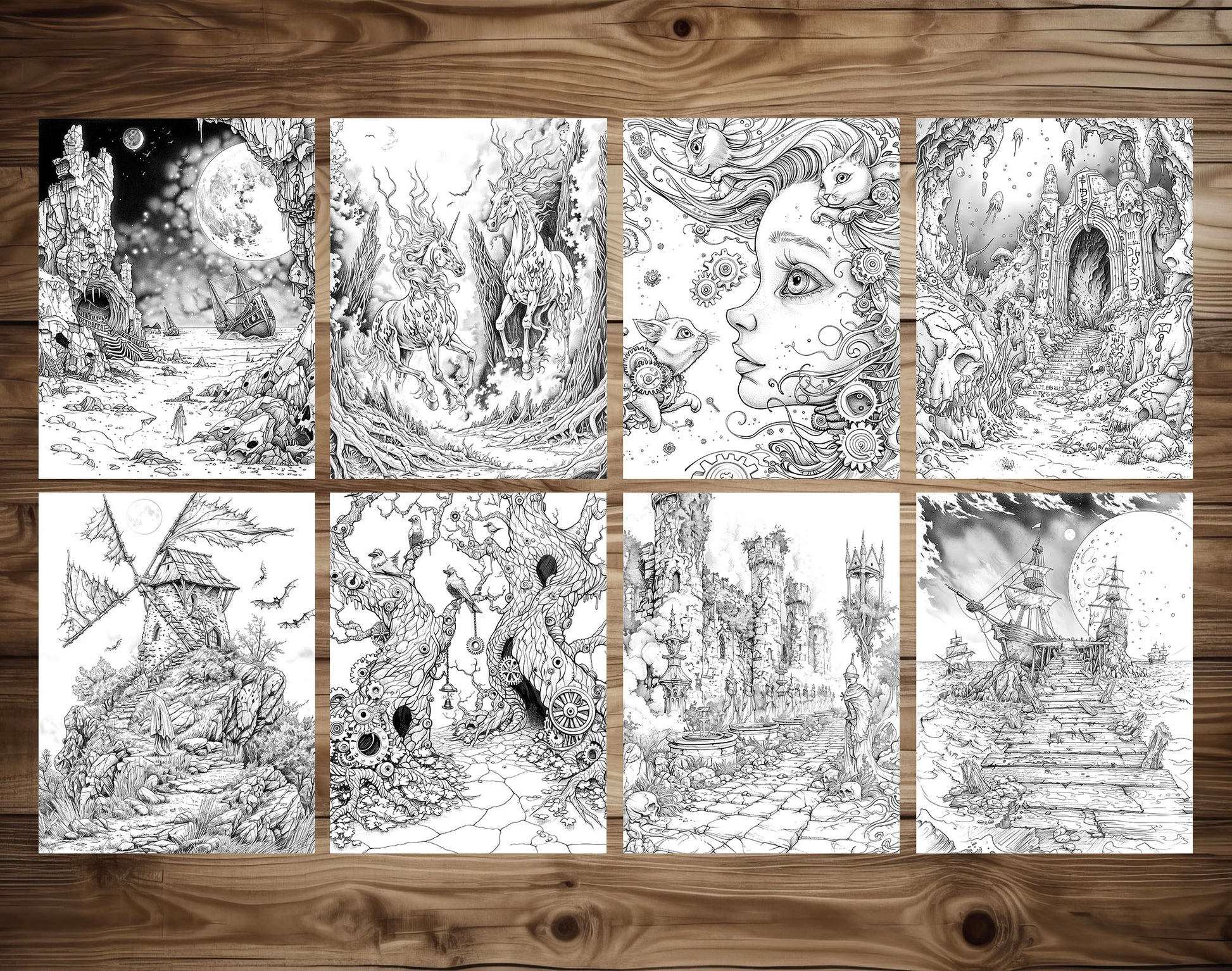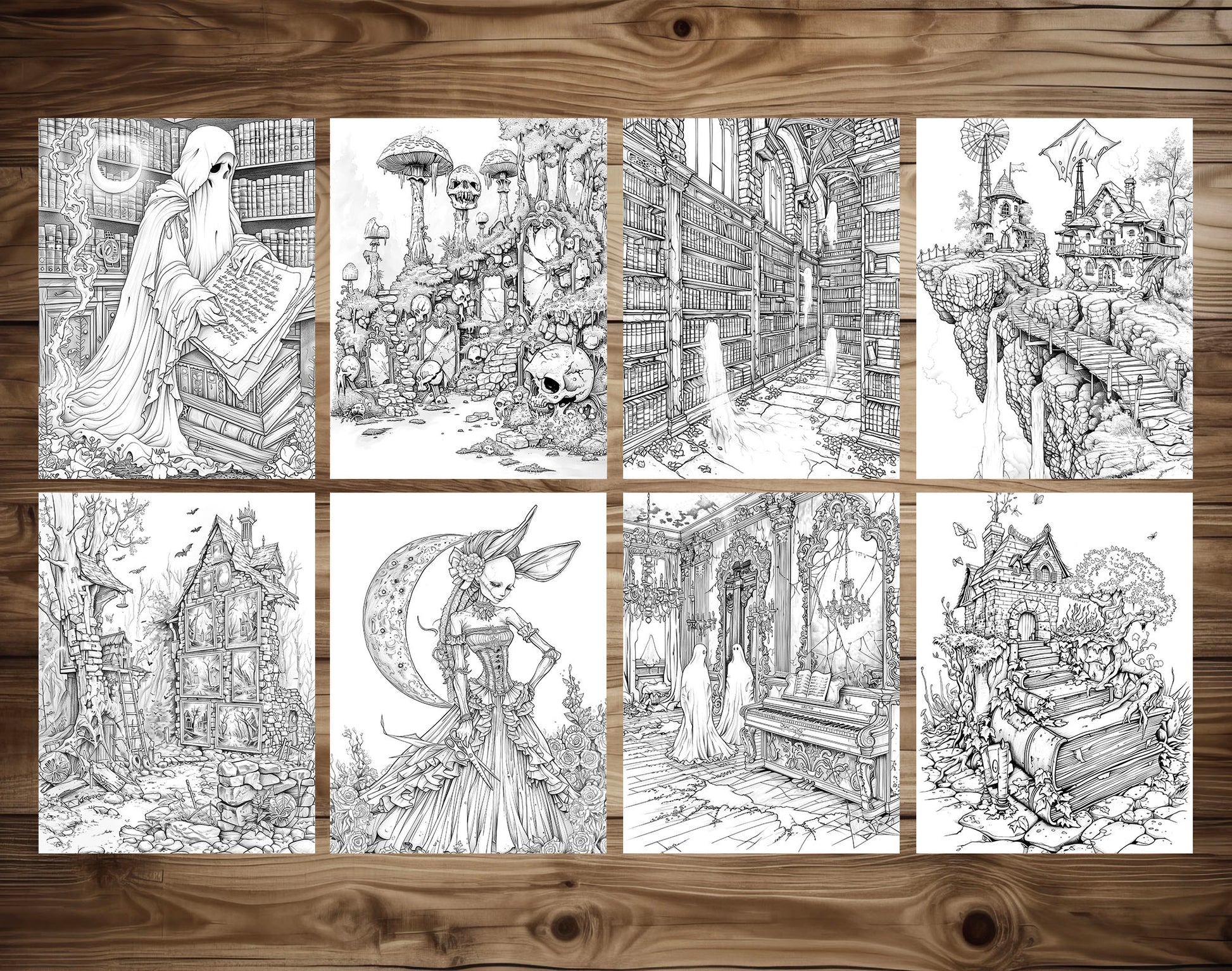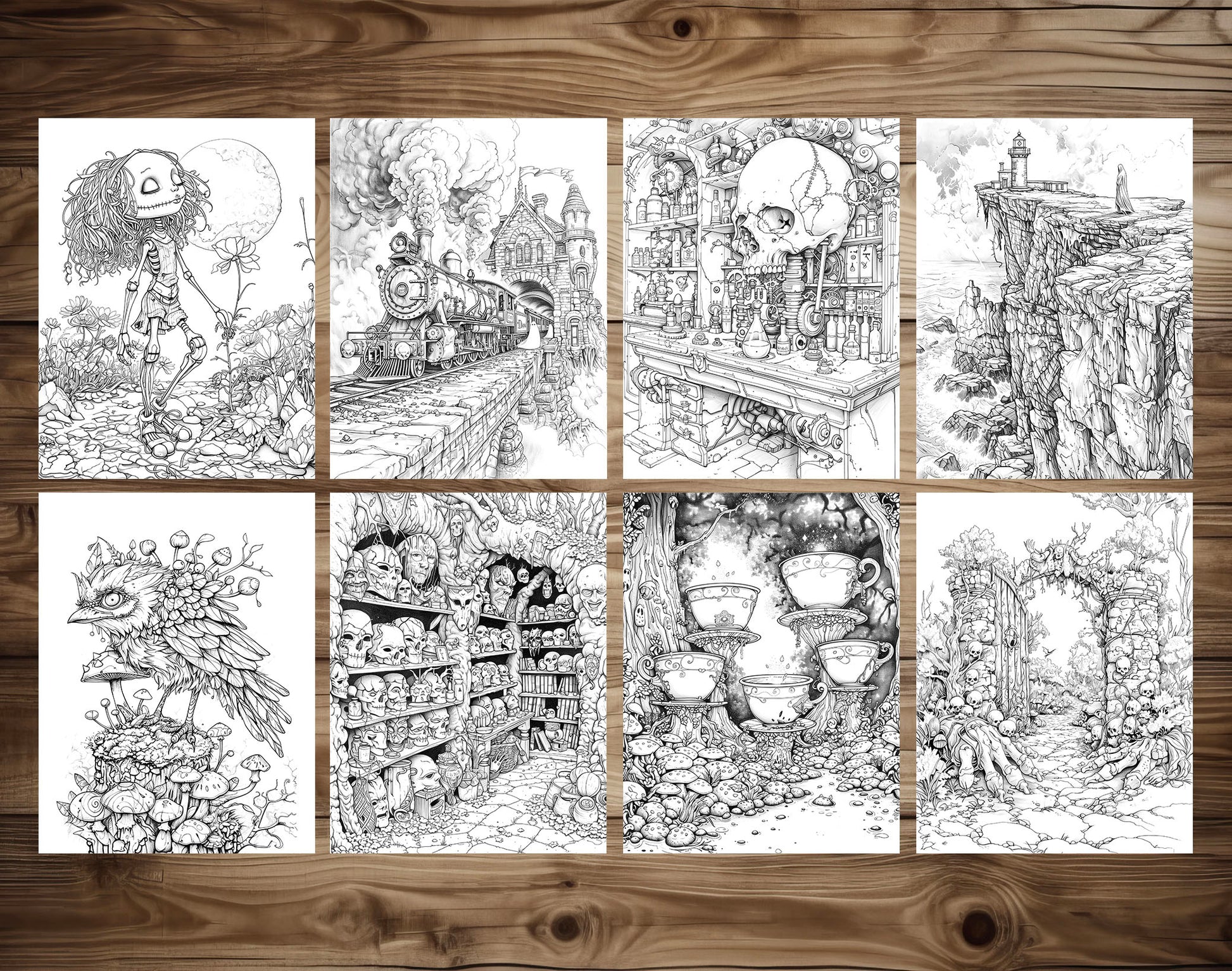 80 Gothic Wonderland Coloring Pages - Instant Download - Printable PDF